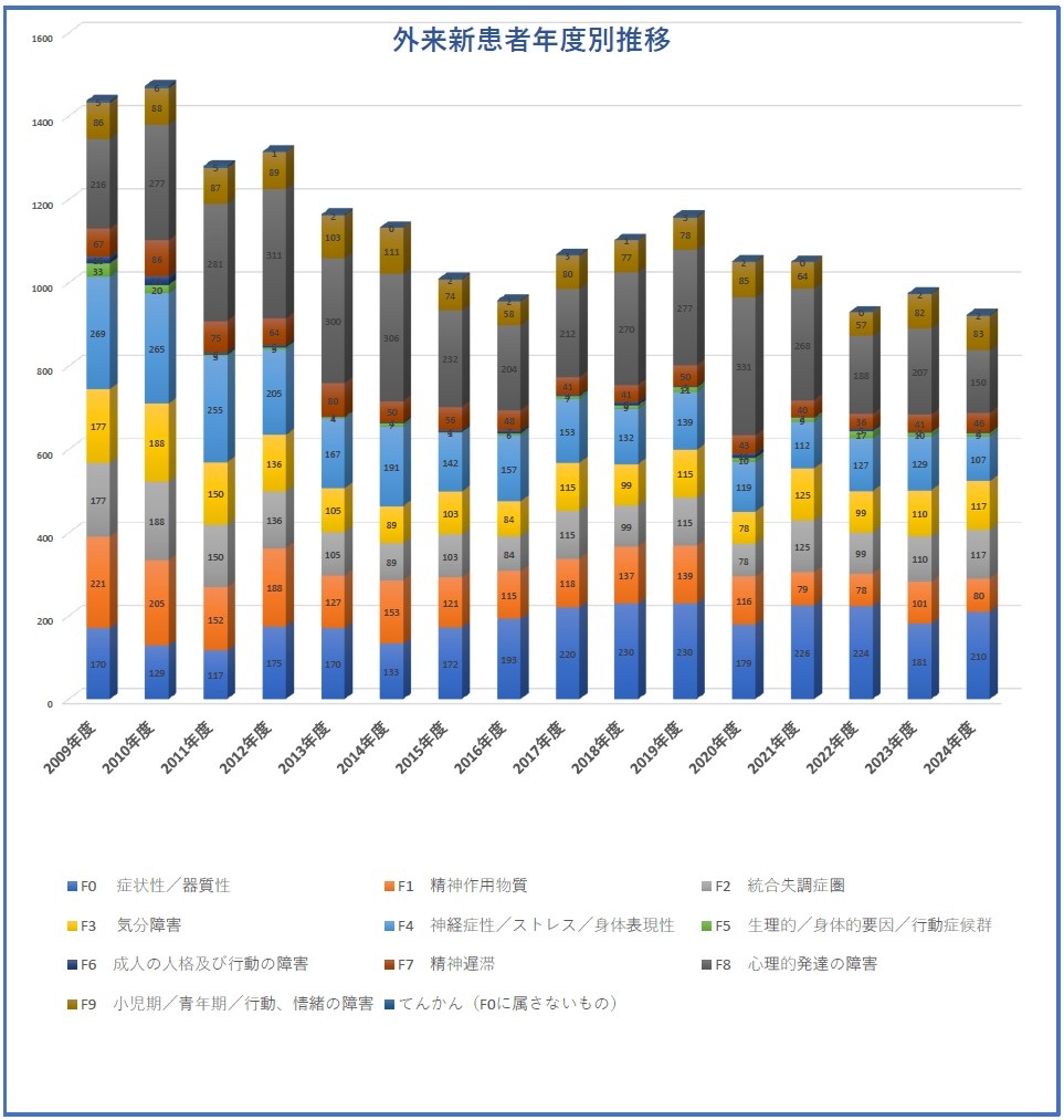 The most important person in this hospital is the patient(この病院で最も大切な人は患者さんである)という基本理念の下、時代のニーズに沿う形で柔軟に発展を続けています。現在では児童思春期の情緒障害と発達障害、精神科スーパー救急、精神科リハビリテーション、アルコール・薬物依存、認知症、神経症、精神科身体合併症、司法精神医学など現代の精神科医療に求められるほとんどの機能と専門領域毎の専門医や専門外来、専門病棟を有するわが国でも数少ない多機能(オールラウンド)型精神科医療機関となっています。